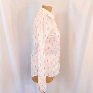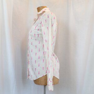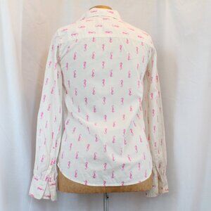 Bring a little fun to your office, home, or party with these adorable seahorses! Pink and cream button down shirt. Roll up the sleeves or keep them down. Cute double breasted pockets add a cute and potentially useful detail. (Flamingo top to match also in closet.)