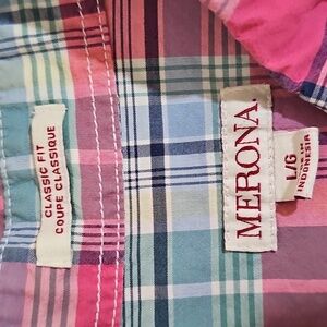 Merona Short Sleeve Button Down Shirt Pastel Plaid 100% Cotton Size L