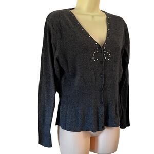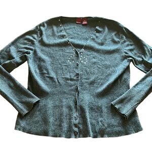Merona Size M Charcoal Gray Embellished Cardigan Sweater
