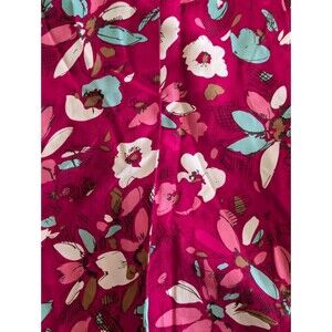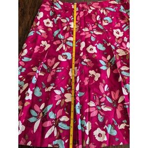 The Merona Skirt in size 6 is a stylish and vibrant piece made from 100% silk, featuring a floral pattern in pink, blue, and white colors. This A-line skirt with a knee-length design and pleated accents makes for a versatile piece suitable for various occasions such as travel, weddings, parties, casual outings, and business events. Its lightweight silk material and preppy style with Y2K and floral themes make it a perfect addition to your summer, fall, or spring wardrobe, offering a touch of bohemian and 90s flair to your ensemble.
