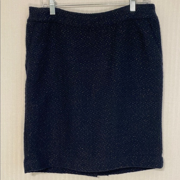 Merona Skirt Pencil Knee Length Navy Blue with Gold Thread Bouclé Lined Size 10