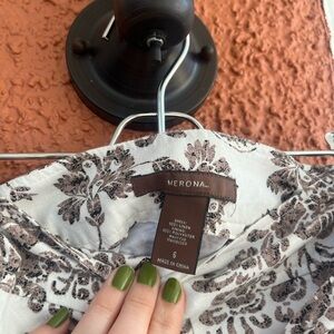 Merona Skirt Womens Size 6 White Brown Floral Print Swing 100% Linen w/ Lining