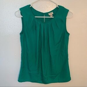 Great condition. Merona. Sleeveless scoop neck blouse. Pleated. Kelly green. Keyhole back. Size XS. 100% polyester. Pit to pit laying flat 17” Shoulder to hem 24.5”. All measurements are approximate and taken lying flat. Smoke free home. No trades, offers welcome.
