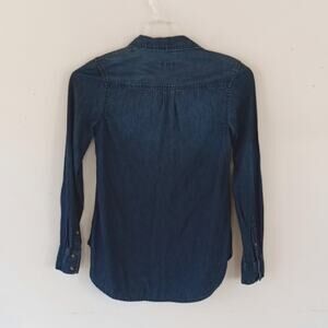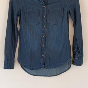 Merona Women's Denim style look Long Sleeve Collared Button Up Shirt, 2 front pockets, 100% cotton, hangs lower in back, darted chest.