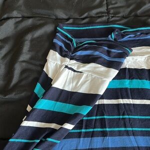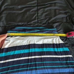 This elegant A-line skirt by Merona features a classic blue and white color scheme with timeless stripes, perfect for resort wear or casual outings.