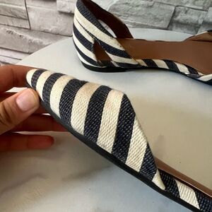 pointed toe flats with blue and white stripes