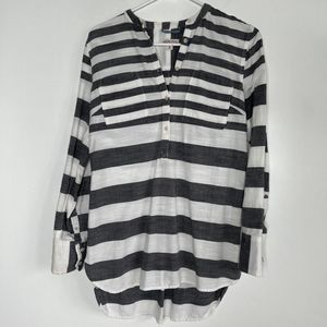 Merona Striped Tunic Top 100% Cotton Dark Gray & White Medium