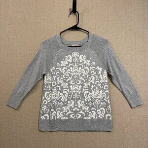 Merona Sweater Women's Medium Gray & White Pullover Mid Length Sleeves