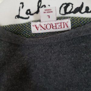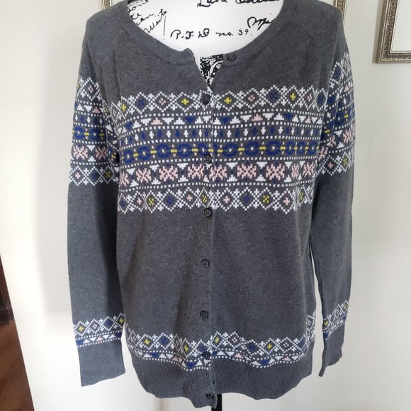 Grey button up sweater cardigan with Swiss detailing, size large.