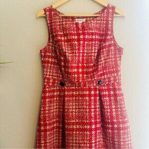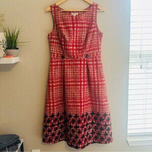 Merona Size 10 Fit & Flare Plaid Dress Red Black Mod Vintage Style Cottagecore Academia