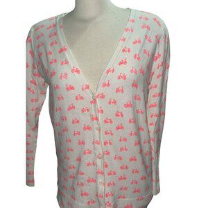 Merona Sz Large White Cardigan With Pink Bicycle Print Long Sleeve