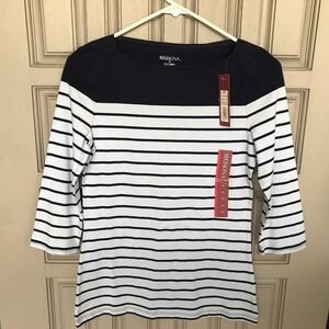 Merona T Shirt SzXS Blue/White Stripe Contrast Yoke 3/4 Sleeves NWT