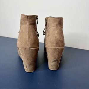 Merona Tan Brown Faux Suede Lace-Up Wedge High Heel Ankle Boot Size 8