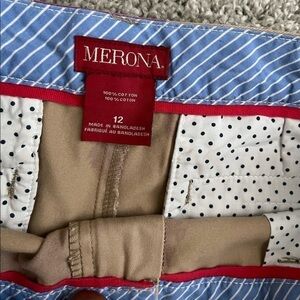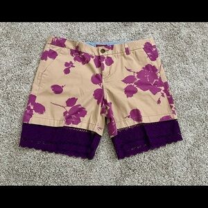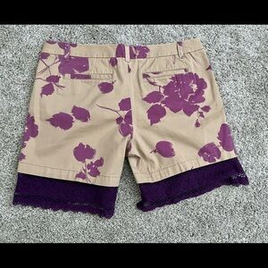 Merona Tan Shorts w/Purple Floral Print & Purple Lace. Waist 17.5 flat so 35 inches. Great condition