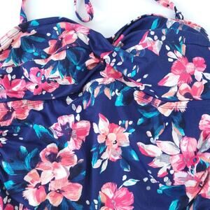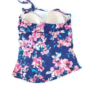Merona Tankini Swimsuit Top Small Blue Pink Floral Bathing Suit Halter Top. Excellent preowned condition