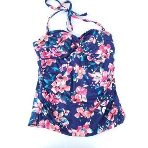 Merona Tankini Swimsuit Top Small Blue Pink Floral Bathing Suit Halter Top