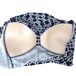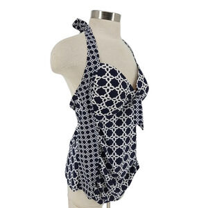 Merona Tankini Top Swimsuit Navy Blue Print Padded Bra Tie Halter