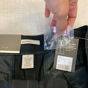 MERONA TAYLOR PANTS WOMENS 12 PIN STRIPE SITS AT HIP FRONT ZIP EBONY STRIPE