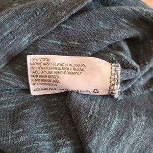 Stay casual and comfortable in this Merona Ultimate Tee long sleeve shirt, size Large. Featuring a soft 100% cotton knit in a heathered teal stripe pattern, this lightweight top offers a relaxed fit with a flattering V-neckline. Perfect for layering or solo wear, its a versatile staple for everyday outfits.