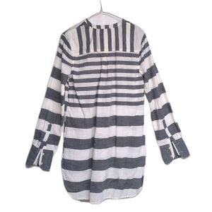 Merona Tunic Top Women Medium Stripes Nautical V-Neck Collarless Navy Cream M
