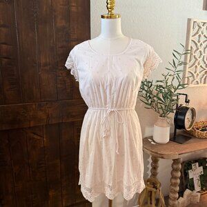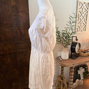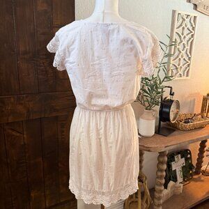 Merona White Dress With Cute Eyelet Detail On Sleeves And Bottom Trim