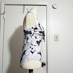 Merona White/Black/Gray Floral Print One Piece Swimsuit Size Large
