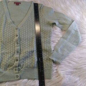 The size small fits true to size, ensuring a flattering and comfortable fit. Its soft fabric composition makes it an ideal layering piece for cooler weather. Whether you're at the office or out for a weekend brunch, this cardigan is sure to complement your outfit with its delightful shade and timeless design.