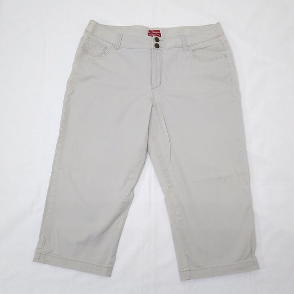 Merona Women Capri 36x21 Fit 1 Stretch Hi-Rise Double Button Beige Tag Sz 16 EUC