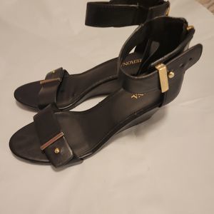 Merona Women Casual Dress Wedge Sandals Ankle Strap Open Toe Black Size 6.