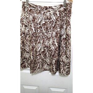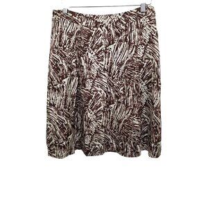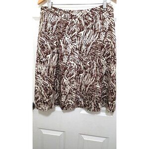 Merona Women's 100% Silk Brown & White Abstract Print A-Line Skirt Size 8 Lightw
