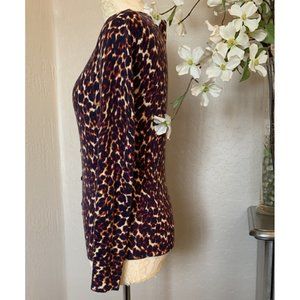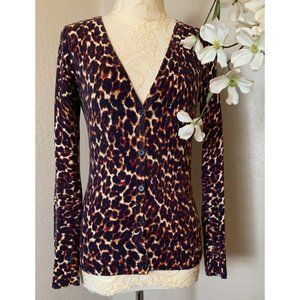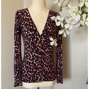 Merona Womens Animal Print Long Sleeve Cardigan Sweater S Brown Button Up Top