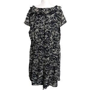 Merona Womens Black & Gray Abstract Print Ruffle Dress Size 4X Polyester Short Sleeve