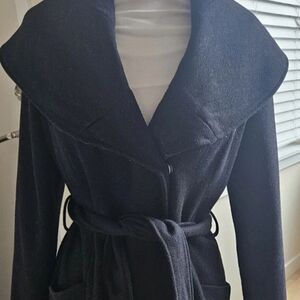 Merona Women's Black Wool Blend Belted Coat Wool Trench Coat Jacket M Versatile