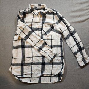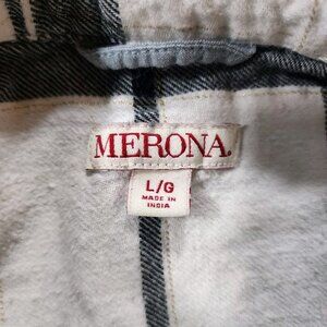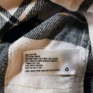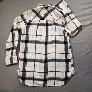 Merona Women’s Black/White 1/4 Button Pullover Plaid Flannel Long Sleeve Large