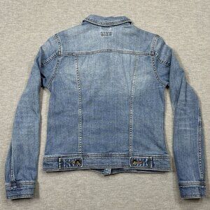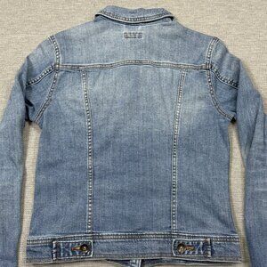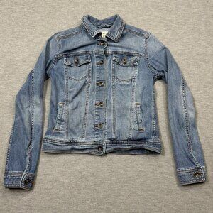 Merona Womens Blue Denim Jean Jacket Button Up Collared Casual 4 Pockets Size XS