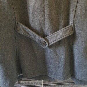 This Women's Button-Down Jacket by Merona is a size M and is made of 80% cotton and 20% polyester. It is gray in color with dark gray buttons. It is like a heavier sweatshirt material on the outside and the inside is a soft fleece like material. No rips or stains. Gently used. Great Condition!