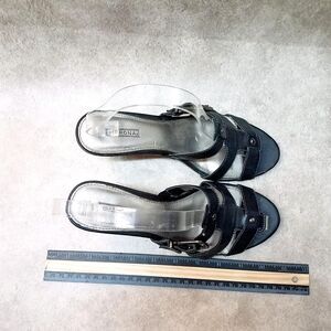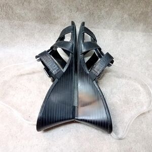 Merona Womens Edwina Size 7.5 Black Leather Open Toe Slide Wedge Sandals