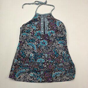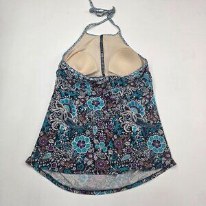 Merona Womens Halter Style Floral Tankini Swim Top w/Tie Back Neck Size L Beach