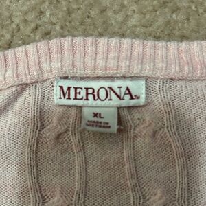 Soft and lightweight cable knit pattern crew neck sweater in a light slightly marled blushy pink. Great for layering for the upcoming cooler months. Merona from Target. Well-loved, size XL.