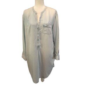 Merona Womens Long Sleeve Button-Down Tunic XL Light Blue
