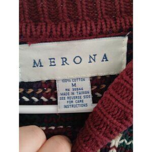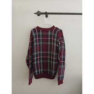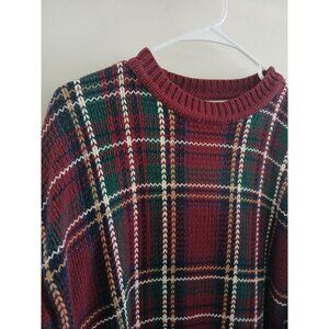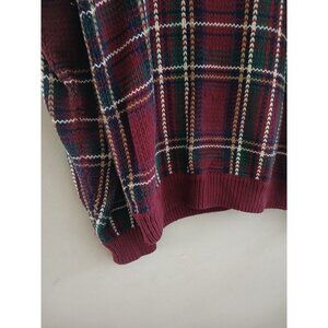 Merona Womens M Red Green Plaid Stripe Knit Vintage Pullover Sweater Holiday 90s