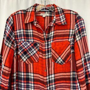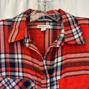 Merona Womens Multicolor Plaid Long Sleeve Collared Button Up Shirt Size XS