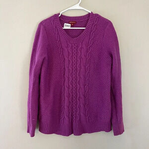 Merona Womens Purple Pullover Sweater XXL Crochet Long Sleeve Ribbed Knit