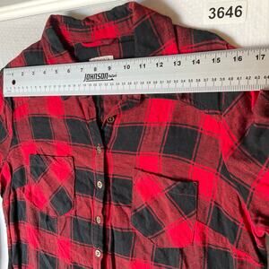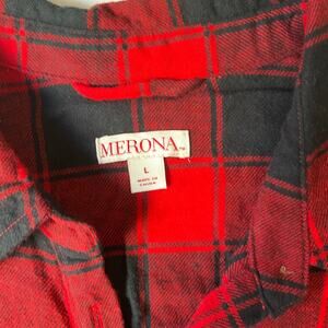 Merona Women’s Shirt Dress size L Long Sleeve Button Up Collar Plaid Red Black