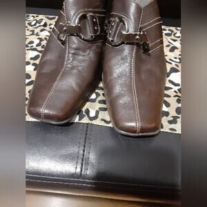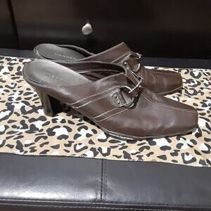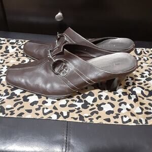 .Epona Women's Leather Slip In Shoes With Heel Brown Size 9.5 Grest Condition Stylish