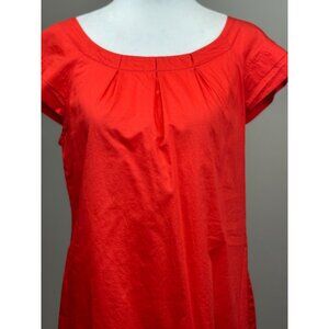Merona Womens Top Chic Orange Short Sleeve Pleated Blouse Size M 100% Cotton