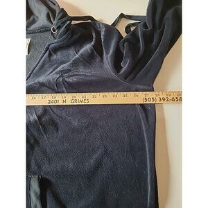 Merona Womens Track Suit 2pc Size 28W Black Velour Polyester Tie Pants Hood