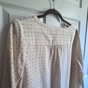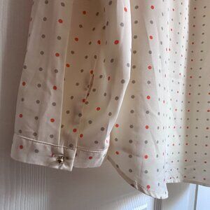 Merona Women's XL Cream w Gray & Orange Polka Dot Long Sleeve Collarless Blouse