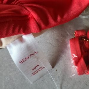 Merona Women's XS One Piece Ruching Red Swimsuit NEW