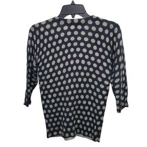 Merona Women's Y2K Black White Polka Dot Soft Knit 3/4 Button Up Cardigan Sz XS
